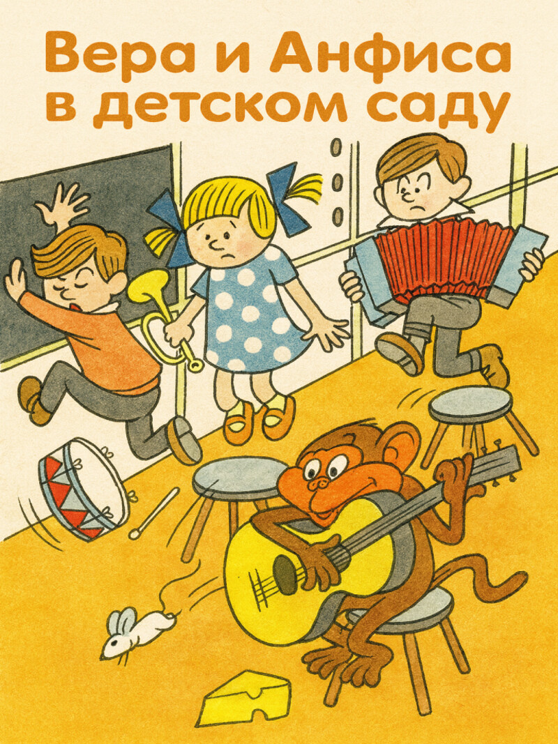 Сказка про то, как девочка Вера и ее обезьянка Анфиса стали в вместе в детский сад ходить. Хоть Анфиса там и проказничала, но воспитатель и ребята ее полюбили.