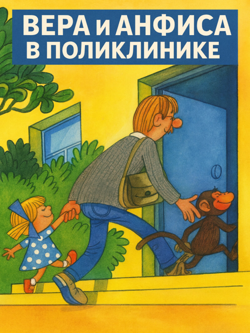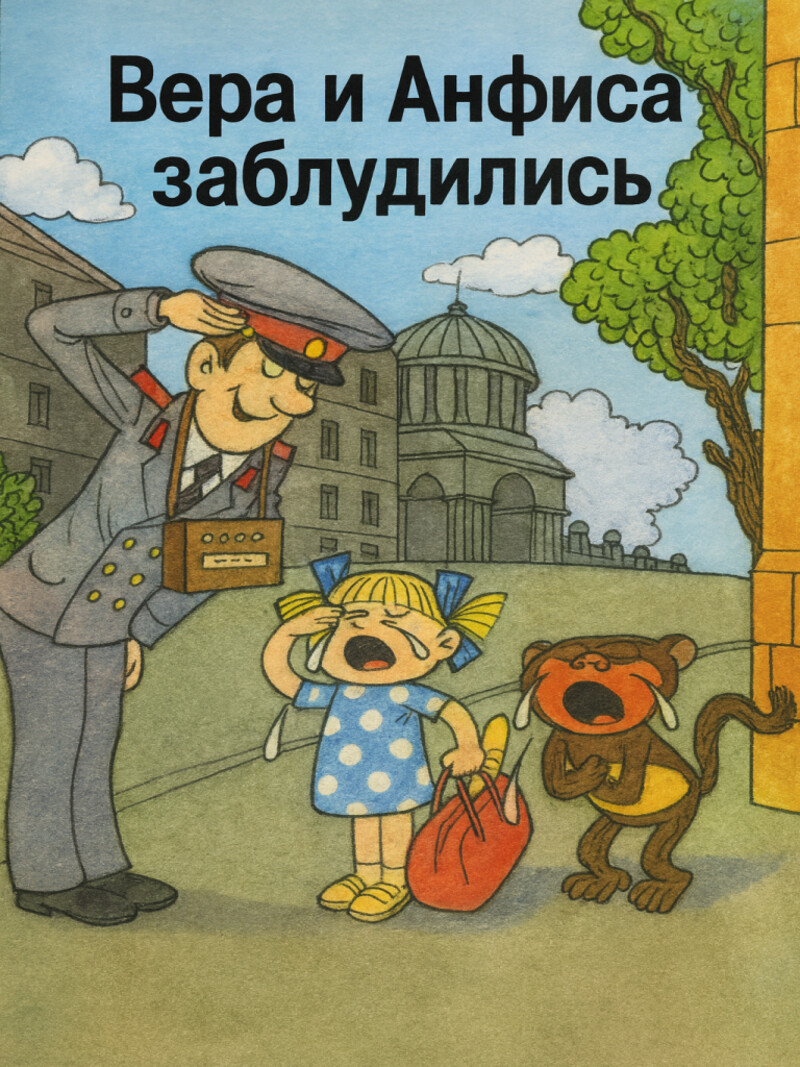 Сказка про то, как Вера и обезьянка Анфиса в булочную за батонами ходили. Но Анфиса там начала проказничать, и Вера ее на улицу вывела и к поручню пристегнула. Но Анфиса и там ухитрилась много бед наделать.