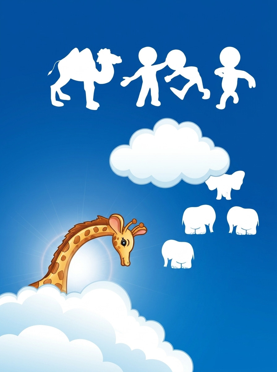 Плыли по небу тучки.Тучек — четыре штучки: от первой до третьей — люди;четвертая была верблюдик. К ним, любопытством объятая,по дороге пристала пятая, от нее в небосинем лонеразбежались за слоником слоник.…
