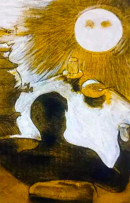 Я сразу смазал карту будня,плеснувши краску из стакана;я показал на блюде студнякосые скулы океана.На чешуе жестяной рыбыпрочёл я зовы новых губ.А выноктюрн сыгратьмогли бына флейте водосточных труб? 1913 г.