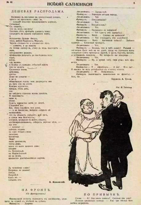 Стихотворение "Дешевая распродажа" в журнале "Новый Сатирикон" №48, 1916г. Женщину ль опутываю в трогательный роман,просто на прохожего гляжу ли —каждый…